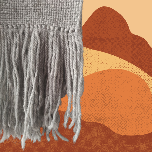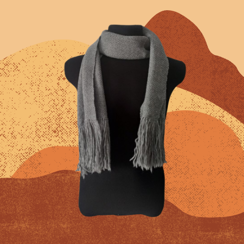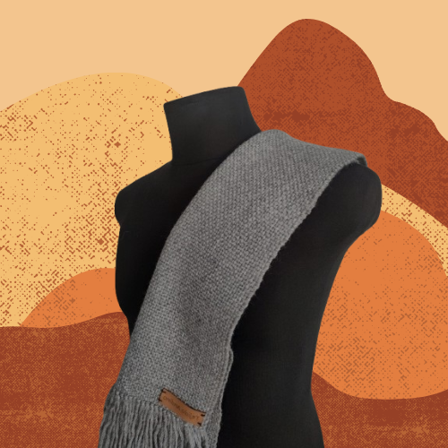 Bufanda tejida en telar con fibras naturales de lana de oveja.