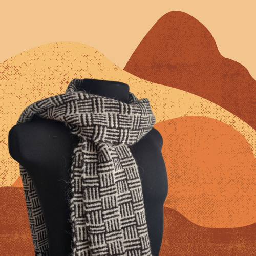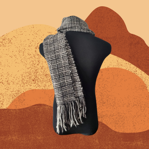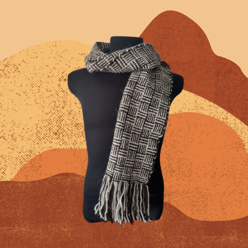 Bufanda tejida en telar con fibras naturales de lana de llama de los Andes.