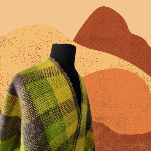 Bufandón tejido en telar con fibras naturales de lana de oveja.