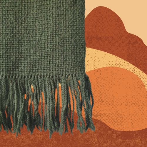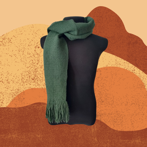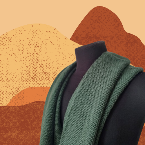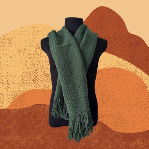 Bufandón tejido en telar con fibras naturales de lana de oveja.