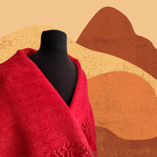 Ruana tejida en telar con fibras naturales de lana de llama de los Andes.